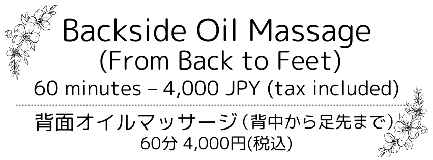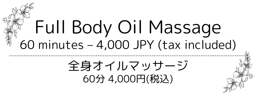 リラックス効果の高いオイルマッサージで、緊張をほぐし、深い癒しの時間をお過ごしください。