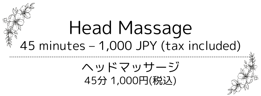 ※キャンセル、時間変更等は前日までにご連絡をお願いします。